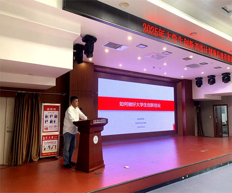 为促进本年度大学生创新训练计划项目按时保质完成,2025年9月24日,创新创业学院在集贤楼报告厅召开2025年度大学生创新训练计划项目建设推进会。活动特邀西安医学院张光伟教授为师生带来关于做好创新创业项目的深度分享。创新创业学院卢润老师、财务处马安霓老师及2025年度大学生创新创业训练计划项目指导教师和学生代表参加会议。
