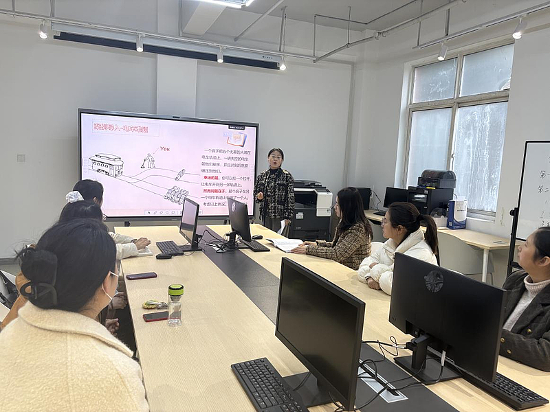 石广田副校长对两位教师的磨课内容给予点评,并从多个维度提出了富有建设性的指导意见。他着重强调了教师备课环节的重要性,要保证充足的备课时间和高质量的备课内容,注重PPT的逻辑性、美观度与教学效果的统一。同时,鼓励教师们要以饱满的热情、充沛的感染力和清晰的表达投入到每一堂课中,以此激发学生的学习兴趣与思考潜能。
