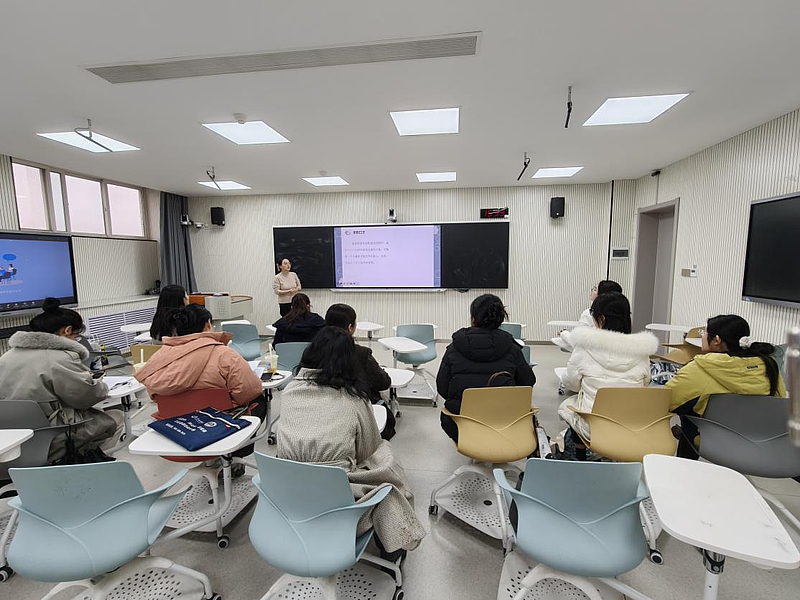 随后,冀梦琪老师以“毛遂自荐”的经典故事引入课程主题。她的讲解重点突出方法论与实践性,详细讲解了自我剖析的方法、面试前的周全准备策略,并着重介绍了自我介绍中的“STAR法则”。在教学过程中注重课堂互动,设置了模拟面试场景环节,引导学生将理论知识即时转化为实践体验。