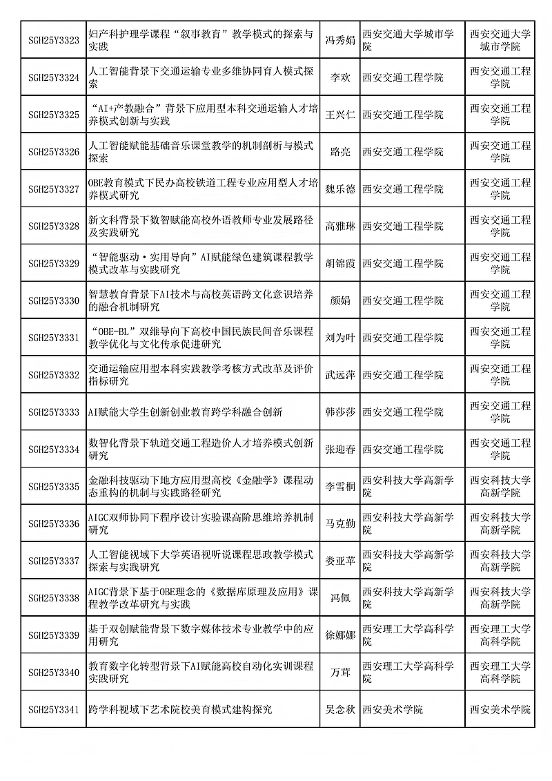 近日,陕西省教育科学规划领导小组办公室公布《关于公布陕西省教育科学“十四五”规划2025年度课题立项名单的通知》(陕教科规办〔2025〕13号),我院韩莎莎老师主持的《AI赋能大学生创新创业教育跨学科融合创新》项目成功获批立项。
